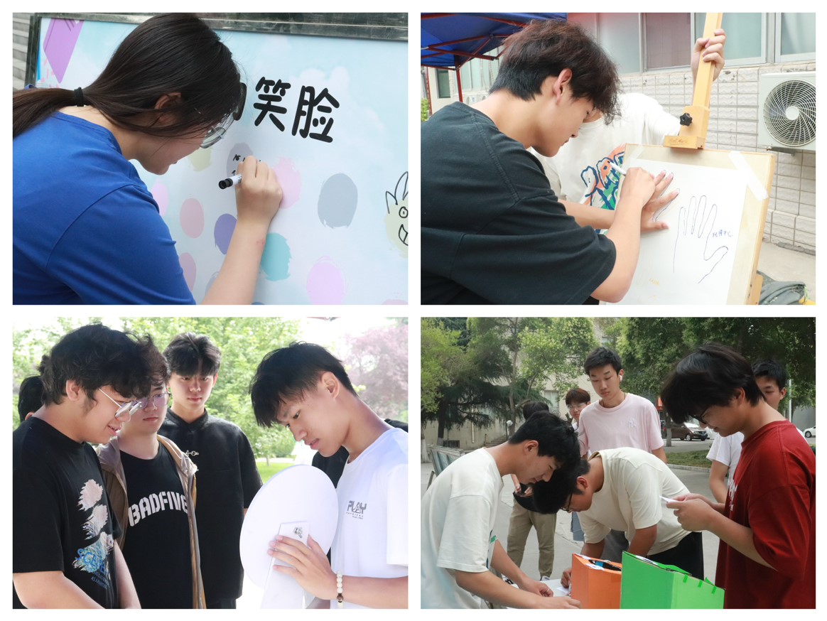本届心理游园会共设置4项活动:请留下你的笑脸、请和我击掌、爱自己的100种方式和情绪收纳箱。游园会活动中,同学们积极参与,沉浸式体验了一场花式的“减压赋能”之旅。参与活动的同学们有的拿起马克笔,在白板上绘制出各式各样的笑脸,表达他们对生活的炽热热爱和对未来的无尽期待。有的在画布之上,将彼此的手印层层叠印,寓意着团结一心,携手为书院心理健康工作贡献力量。有的参与打卡拍照记录爱自己的各种方式,明白爱自己是一种不可或缺的生活艺术。而情绪收纳箱活动更是变成了促进心理健康和情感表达的一道亮丽风景线。