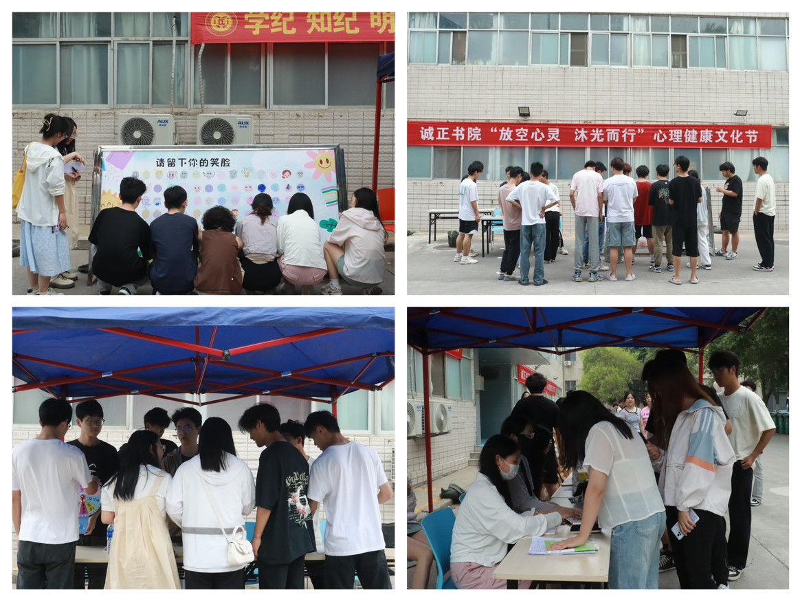 为了提高同学们对心理健康的认识,引导同学们接纳自我、缓解压力、放松心情,促进自身的全面发展,5月25日,由诚正书院学生会、班长联席会联合承办的“放空心灵,沐浴而行”心理游园会于诚正书院楼前举办。书院围绕此次主题,组织开展了众多集学习性、趣味性、体验性于一体的游戏活动。