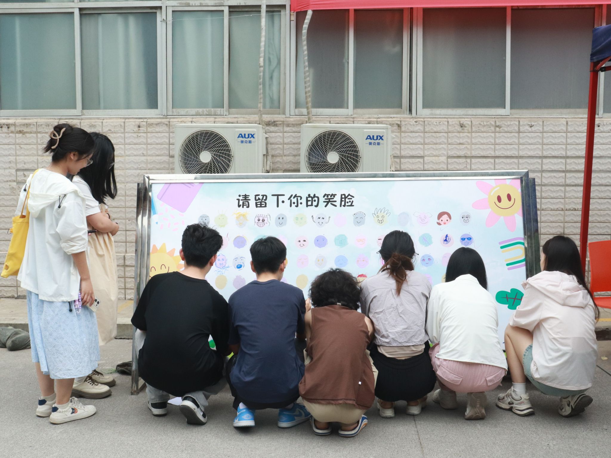 游园会活动中,同学们积极参与,沉浸式体验了一场花式的“减压赋能”之旅。参与活动的同学们有的拿起马克笔,在白板上绘制出各式各样的笑脸,表达他们对生活的炽热热爱和对未来的无尽期待。有的在画布之上,将彼此的手印层层叠印,寓意着团结一心,携手为书院心理健康工作贡献力量。有的参与打卡拍照记录爱自己的各种方式,明白爱自己是一种不可或缺的生活艺术。而情绪收纳箱活动更是变成了促进心理健康和情感表达的一道亮丽风景线。