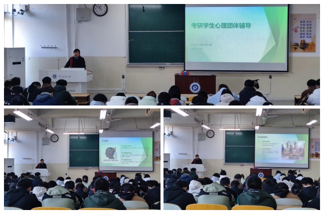 为帮助考研学子缓解备考压力,调整心态,以最佳状态迎接即将到来的考试。资环学院于11月20日在二教楼2302教室由心理咨询师王静老师为考研学生开展了一次考研前心理辅导活动。