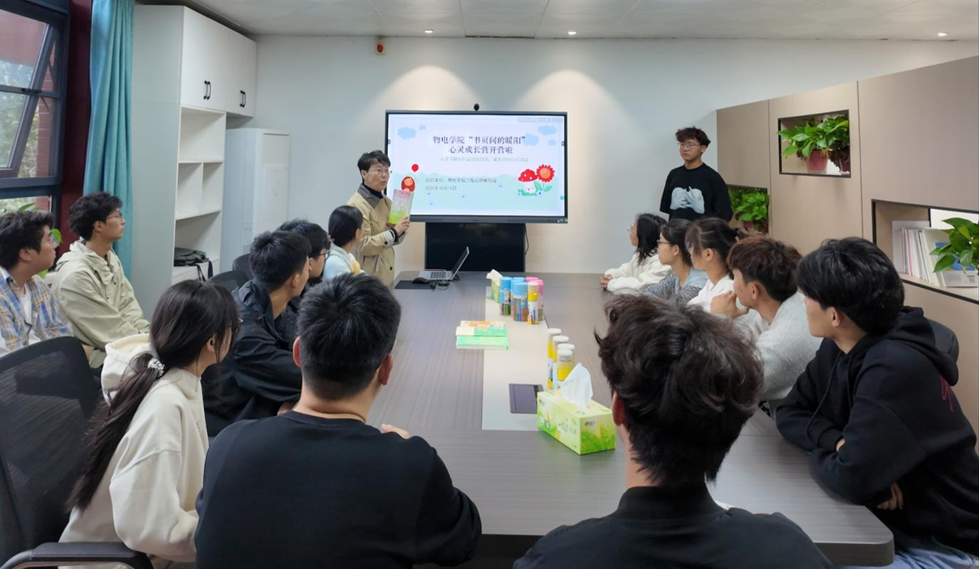 本网讯(通讯员 李茹歌 刘杨)为助力学生提升情绪感知能力,深化理解快乐内涵,营造积极健康的心理氛围。10月14日,物电学院在综合实验楼二级心理辅导站225室举办“书页间的暖阳”心灵成长心理活动。本次活动由该院辅导员王燕主持,辅导员李茹歌受邀到场,2024级各班心理委员积极参加。