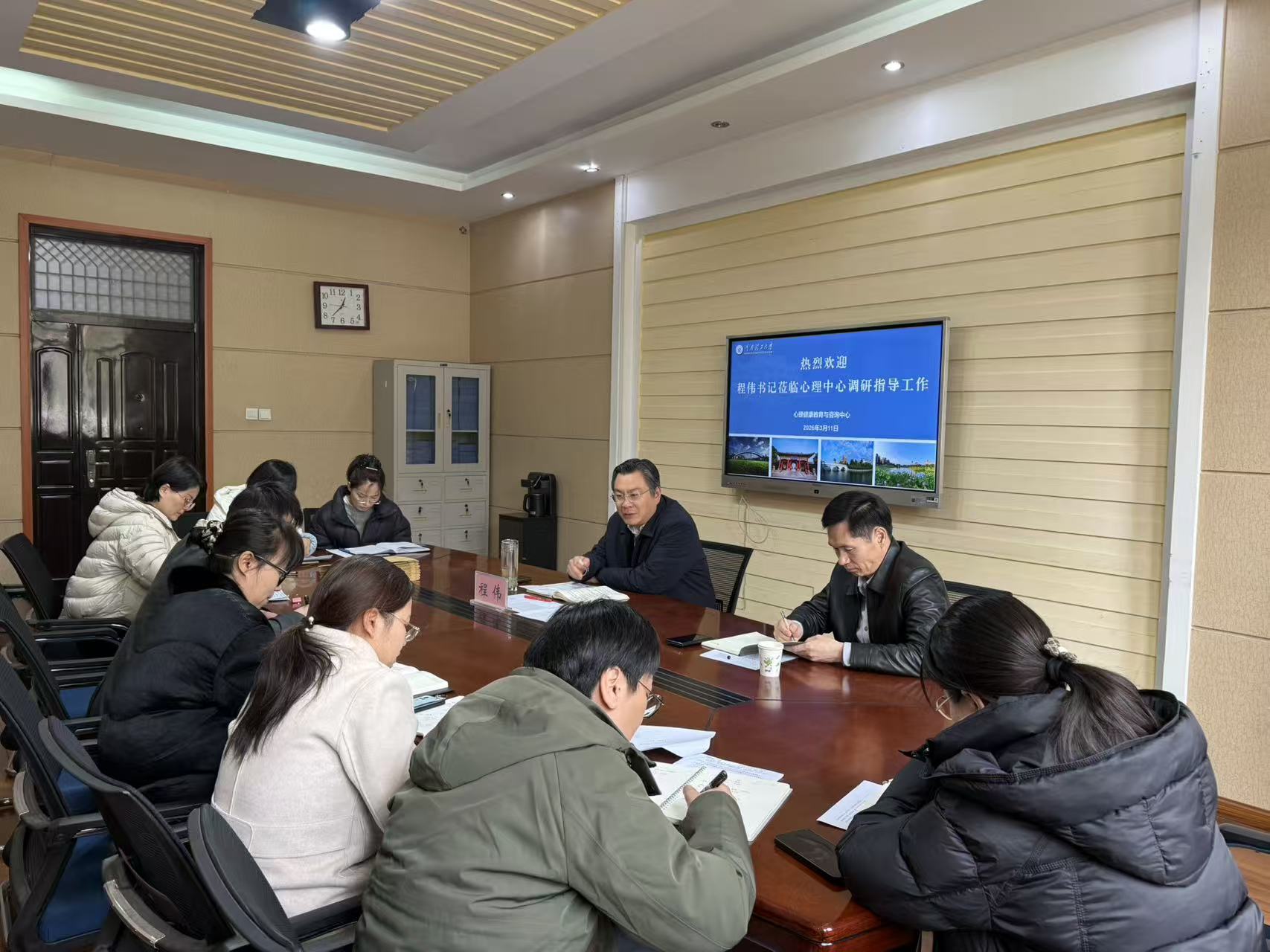 程伟实地察看了心理中心的功能区域,听取了关于心理健康教育、日常咨询、监测预警、危机干预等方面的工作汇报,对心理中心前期工作取得的成效给予充分肯定。他指出,心理健康教育在学校育人体系中具有三个“无可替代”的地位和作用:一是在育人体系和工作实践中的关键作用;二是在构建大思政、大团学、大安全格局中的支撑作用;三是在维护校园安全稳定中的保障作用。针对下一步工作推进,他提出三点要求:一是牢记情怀使命,强化育人理念。用心用情用力投入工作,将个人发展融入育人大局;二是强化研究思维,专心专注育心育人。深耕细作打造专业品牌,构建专业化工作体系,将育人成果打造成学校品牌;三是锚定安全稳定目标,充分展现个人担当。要坚决守住安全底线,提升服务效能。程伟表示,学校将一如既往地支持心理中心建设,希望中心全体教师继续发扬甘于奉献、潜心育人的精神,以更扎实的工作、更专业的服务守护学生心理健康,为学校高质量发展和平安校园建设作出新的更大贡献。