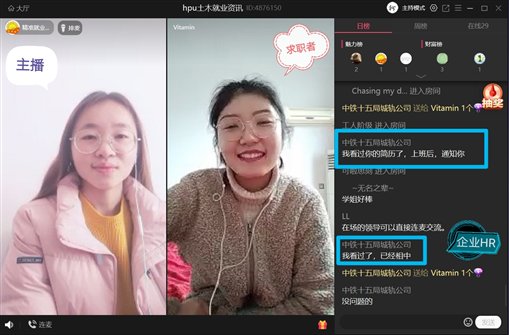 为助力打赢疫情防控阻击战,解决用人单位的招聘需求和应往届毕业生的求职述求,该院辅导员指导在校大学生自主创业公司旗下的精准就业服务团队,依托“hpu土木就业资讯”QQ群,发挥群视频功能,采用直播方式,在2020年春季开学前的每周周一、周三、周五下午开展公益性线上精准就业服务活动。“hpu土木就业资讯”QQ群是该院辅导员经过三年多时间所构建的,群中有近500家企业人力资源部门人员和1000余名该院应届、往届毕业生。主播尹香琰是土木学院二年级学生,亦是精准就业服务团队负责人,直播以互动交流形式进行,由求职学生连麦主播,介绍个人基本情况、学业状况、求职意向等,用人单位招聘人员可随时连麦主播,与求职学生进行可视交流。活动受到了群成员的一致好评,中建新疆建工集团、中铁十五局集团、中交路桥建设有限公司等多家企业招聘人员参与其中,收效甚佳。