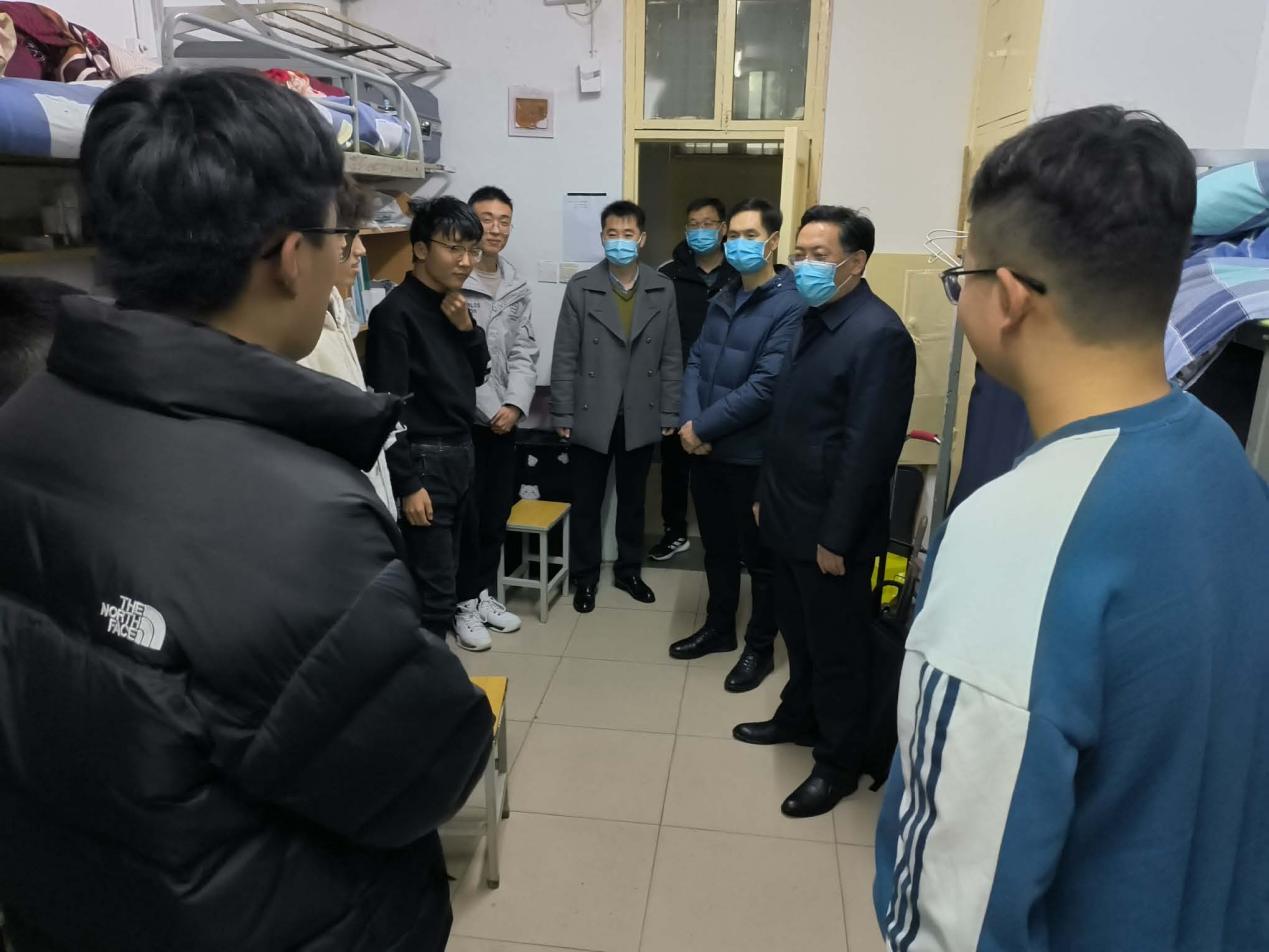 为及时了解学生返校后的思想、学习和生活状况,确保各项学生管理工作有序平稳开展,2月12日晚,校党委副书记解伟带领学生工作部(处)负责人及相关人员,深入走访学生宿舍,为学生送去关心和问候。