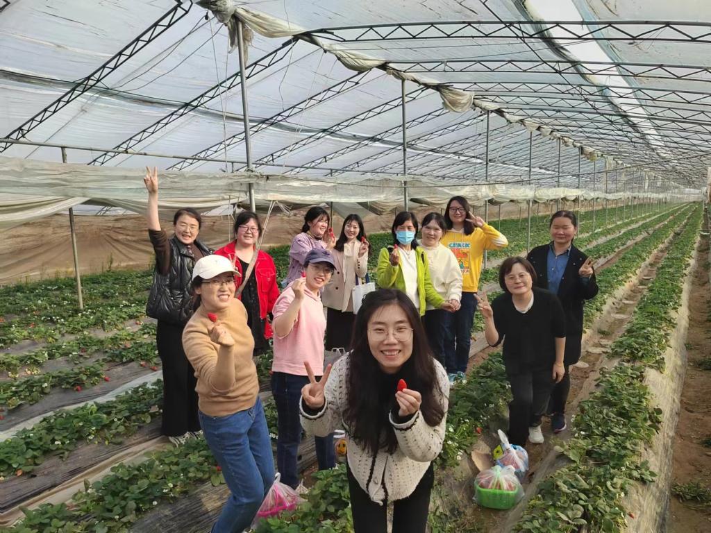 本网讯 (通讯员 孟祥燕)3月7日下午,在“三八”国际妇女节来临之际,为了让老师们度过一个温馨愉快的节日,学生处组织全体教职工赴焦作纳纳采摘园开展“‘莓’好时光,快乐‘番’倍”三八节果蔬采摘活动。