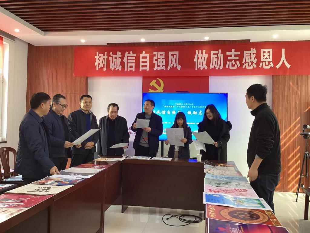 为深入学习贯彻习近平新时代中国特色社会主义思想,认真落实党的二十大关于“完善覆盖全学段学生资助体系”的重要决策部署,进一步发挥“资助育人”在“立德树人”根本任务中的关键作用,根据河南省教育厅通知要求,我校于3月19日至20日在建艺学院晓书楼成功组织举办2023-2024学年度诚信校园行学生资助公益广告设计大赛评审活动。
