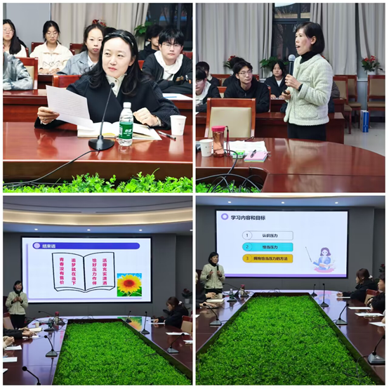 胡利霞凭借其丰富的专业知识和教学经验,深入浅出地为同学们剖析了压力的本质,从多个角度讲解了如何评估压力,引导同学们认识到不同程度的压力对自身的影响。在讲解过程中,胡利霞运用了生动的案例和科学的数据,使抽象的压力变得具体可感。同时,胡利霞引导同学们培养成长型思维,制定具体、可量化的目标,建议同学们从不同的角度正确对待压力,缓解焦虑。