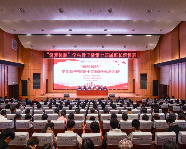 为引导广大班级骨干认真学习和践行习近平新时代中国特色社会主义思想,进一步加强学生基层班级干部队伍建设,学校于11月10日在第二图书馆A厅举办为期一天的“筑梦领航”学生骨干暨第十四届班长培训班。此次培训由学生工作处主办、应急管理学院承办。学生工作部(处)部(处)长陈昊、应急学院相关领导、2024级全体新生班长及辅导员代表共计330余人参与培训。培训由学生工作部(处)副部(处)长汪莉霞主持。
