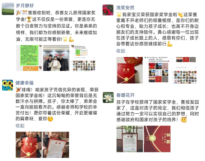 本次获得国家奖学金的学生均是在校期间表现优异、成绩突出的佼佼者,他们在各自的专业领域中刻苦钻研、积极进取,具有较高的综合素质,是全校学生学习的楷模。国家奖学金这一荣誉不仅是学校对学生勤奋努力的肯定,同时也是家长对孩子悉心栽培、全力支持的硕果。喜报传递不仅是简单的邮寄工作,更是对家长们在学校人才培养过程中给予的支持表示感谢。收到喜报后,学生、家长们反响强烈,喜悦之情溢于言表。许多学生表示,收到学校寄来的喜报,他们感到无比自豪和激动,这将激励他们更加努力地学习,不断提升自我,以回报学校和社会的关爱。家长们也纷纷对学校的这一举措表示赞赏和感谢,他们认为,喜报不仅是对孩子学习成绩的肯定,更是对他们未来发展的鼓励和鞭策。一位家长激动地说:“收到学校的喜报,我们全家都非常高兴和骄傲,衷心感谢学校老师的辛勤付出。我们会全力支持孩子的学习,希望孩子能够在学校的教育培养下,成为对社会有用的人,为国家发展贡献力量。”
