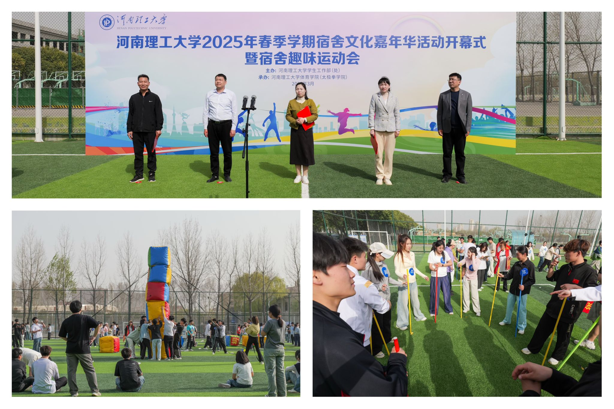 为深入贯彻落实立德树人根本任务,深化宿舍文化建设内涵,营造“安全有序、干净整洁、温馨和谐”的育人环境,学校于3月25日下午在南校区东区新足球场举办河南理工大学2025年春季学期宿舍文化嘉年华活动开幕式暨宿舍趣味运动会。此次活动由学生工作部(处)主办,体育学院承办,校党委宣传部、学生工作部(处)、后勤保障部、保卫处以及体育学院等部门领导,与各学院、书院的300余名参赛学生和带队老师共同参与。