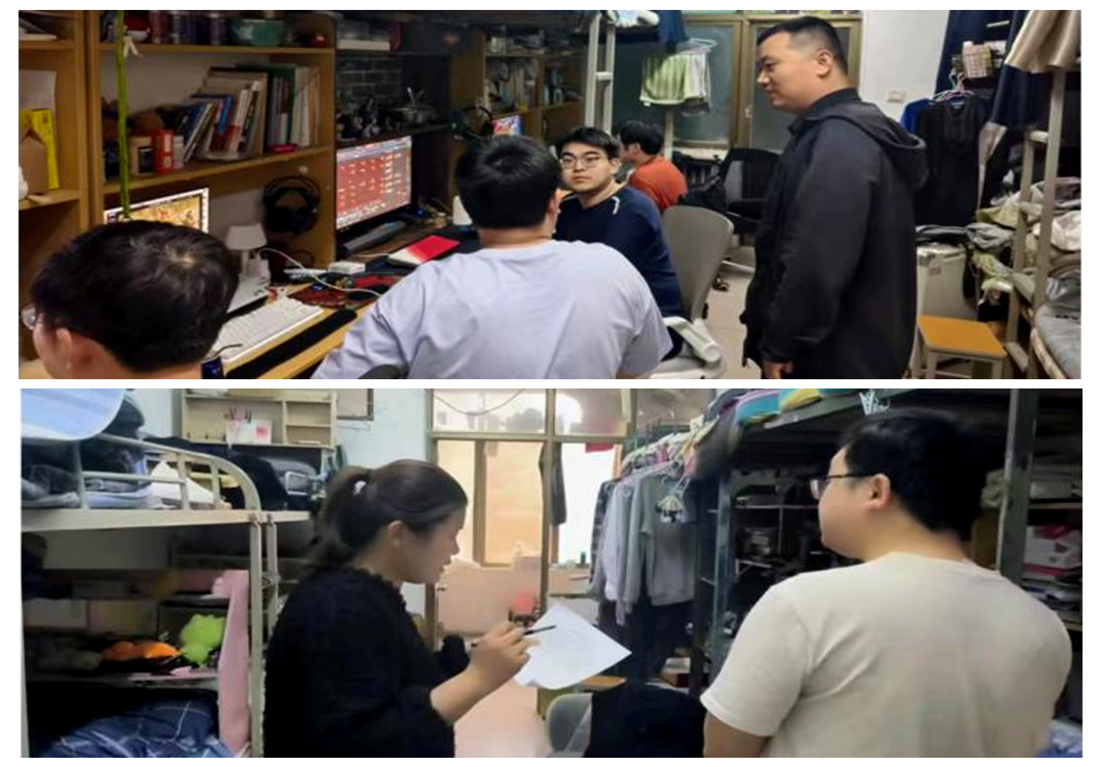 全体辅导员逐一走访留校学生宿舍,细致排查宿舍是否存在安全隐患,同时向学生普及安全知识,提醒学生严格遵守宿舍管理规章制度,增强自我保护意识,警惕网络诈骗,避免陷入各类安全陷阱。除此之外,辅导员们还详细询问留校学生的学习、生活情况,叮嘱他们合理安排假期时间,共同营造安全和谐的宿舍环境,让同学们感受到家一般的温暖和关怀。