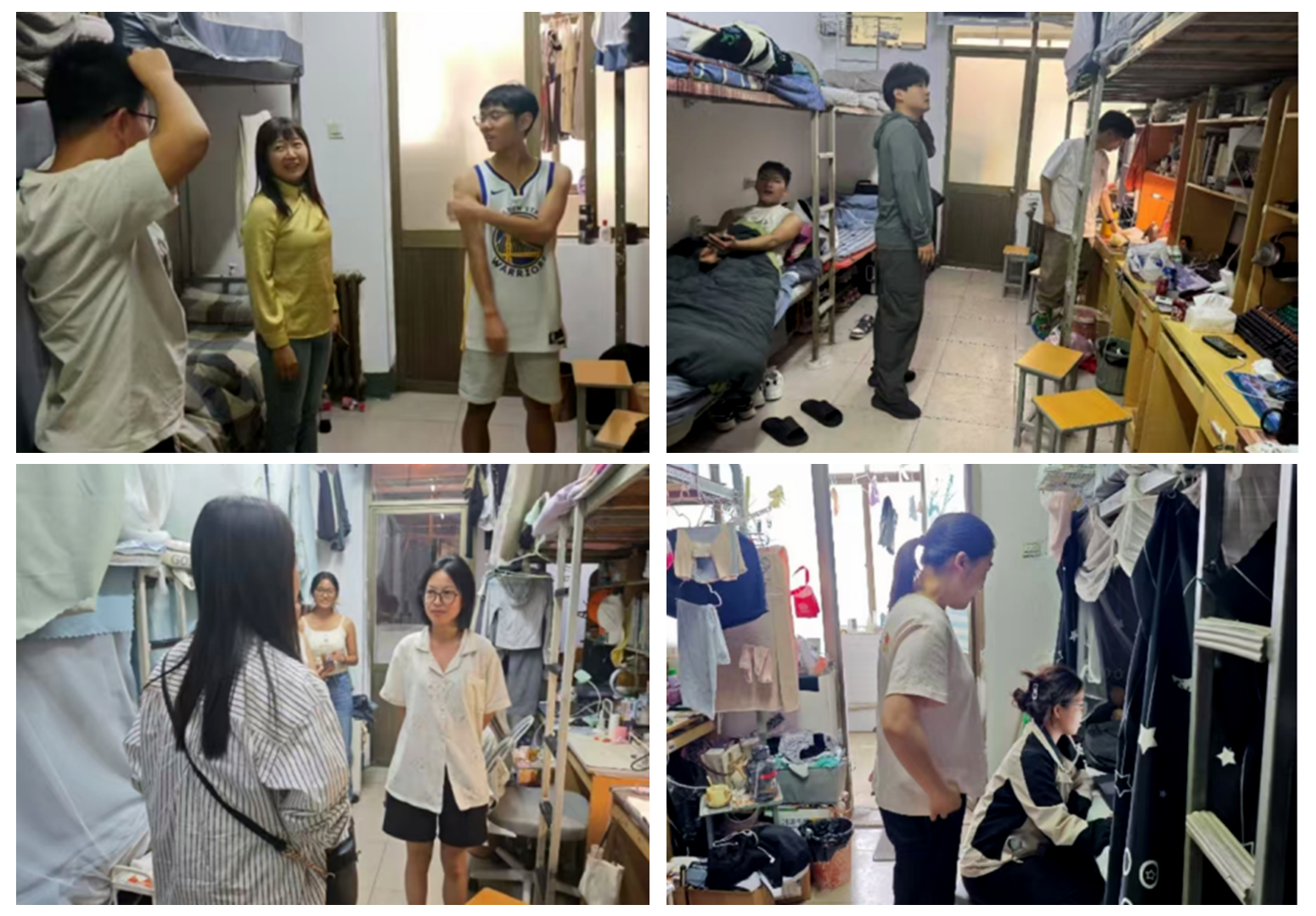 走访过程中,老师们与同学们亲切交谈,细致询问了同学们的假期安排、学习进展和生活需求,特别叮嘱同学们要增强安全意识,注意宿舍用电安全与人身财产安全,合理安排假期时间,劳逸结合,积极参与校园活动。针对毕业生宿舍,老师们还重点了解了学生的就业进展与未来规划,鼓励大家树立信心,充分利用校内外资源,积极应对挑战。