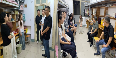 为全面了解新生入学后的适应状况,传达学院的人文关怀,助力新生迅速融入校园生活,提高新生入学初的安全防范意识。9月6日晚,外语学院领导班子成员以及25级新生辅导员和班主任一同深入大一新生宿舍开展走访慰问。