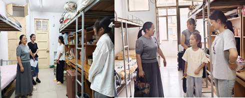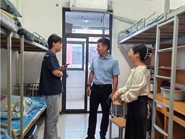 “生活用品还缺不缺?”“从家过来一路还顺利吗?”“外省的同学还适应吗?”一句句贴心的询问,拉近了学院与新生之间的距离,让初到陌生环境的同学们感到了家一般的温暖。走访过程中,学院领导老师叮嘱同学们,要尽快熟悉学校宿舍安全管理规定,注意用电安全、财产安全,提高防盗防诈意识,同时鼓励大家主动与室友沟通交流,相互包容、互帮互助,共同营造和谐友爱的宿舍氛围;无论遇到学习困惑还是生活难题,学院老师都会积极为同学们排忧解难,学院永远是大家坚实的后盾。从专业学习与校园生活规划角度,领导鼓励同学们尽快调整学习状态,提前了解专业课程设置,积极参与学术讲座和社团活动,在探索兴趣的同时提升综合素养;珍惜大学时光,明确学习目标,在接下来的四年里学有所成、不负韶华。