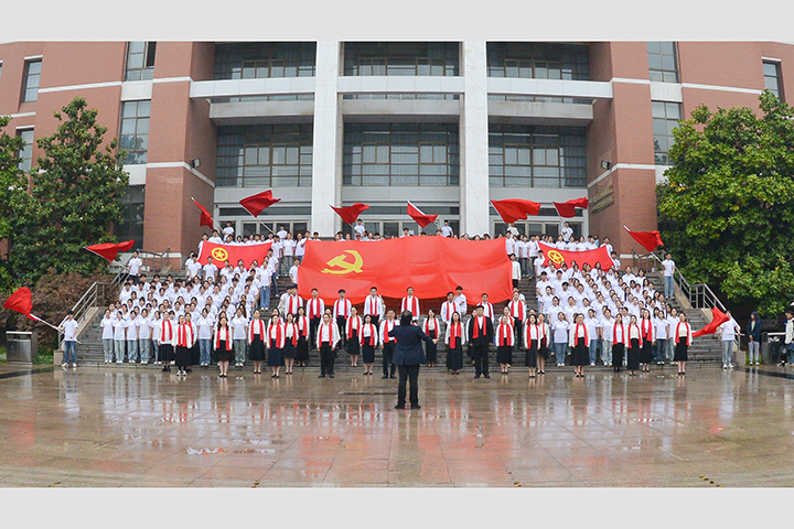 升旗仪式上,音乐学院师生以歌舞形式演绎了歌曲《光荣啊,中国共青团》,庆祝“五四”青年节。