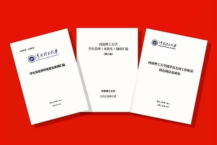 本网讯 为加强和改进辅导员工作,进一步强化辅导员政策制度学习,规范辅导员工作行为流程,提升辅导员工作能力和服务水平,学生工作部(处)为辅导员编印了《河南理工大学2025年度辅导员年度工作月历》《河南理工大学辅导员工作标准化流程》《河南理工大学学生管理(本科生)制度汇编》《河南理工大学辅导员九项工作职责特色做法及成效》和《河南理工大学学生突发事件处置及案例汇编》等学习辅导资料,供辅导员学习和工作使用。
