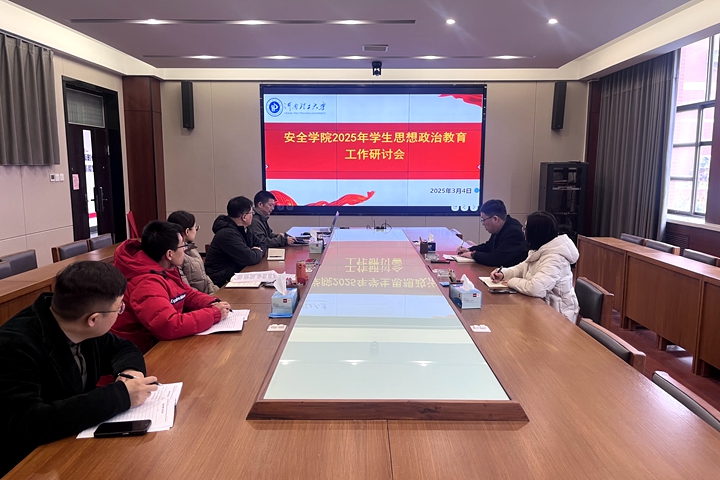 本网讯(通讯员 穆锐)为进一步加强学生思想政治教育工作,切实推动学院学生工作高质量发展,3月4日上午,安全学院在该院楼304会议室召开2025年学生思想政治教育工作研讨会。该院相关领导,以及全体专职辅导员参会,研讨会由该院党委副书记李静主持。