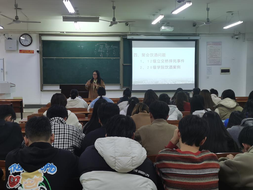 为提高广大学生的安全防范意识、优化班级的学习氛围、加强23级新生学生手册的了解,提高全体同学的诚信考试、诚实做人的意识,11月21日-23日工商管理学院各个学生班级在辅导员老师的带领下,纷纷开展了各具特色的主题班会活动。