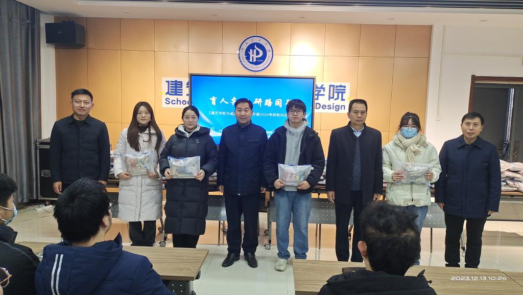 随后,两院领导共同为建艺学院考研学生发放慰问品并合影留念,为大家送去了寒冬里的温暖,助力大家研考成功。