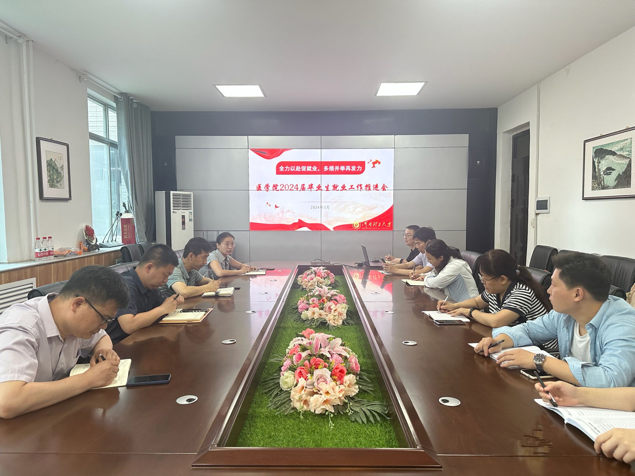 为深入贯彻学习党的二十大精神,全面落实党中央、国务院、省教育厅对高校毕业生就业创业工作的决策部署。5月20日上午,在223会议室召开了医学院2024届毕业生就业工作推进会,党委书记张向锋、党委副书记朱丹、副院长王振辉、、副院长陈文波、各系部主任、全体专兼职辅导员出席会议,会议由党委副书记朱丹主持。