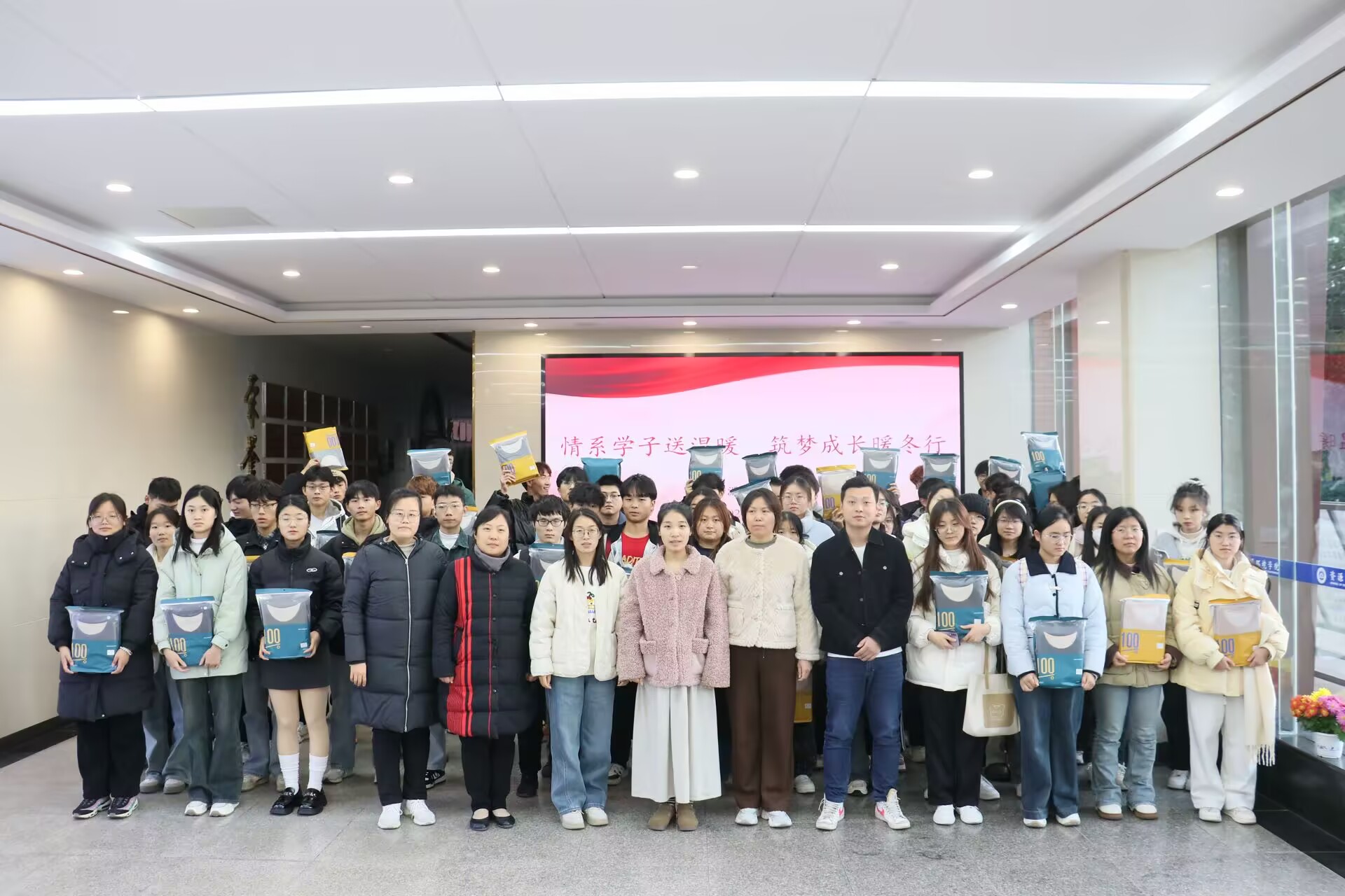 为确保家庭经济困难学生安心过冬,深入做好家庭经济困难学生的关心关爱工作,充分发挥学院资助育人实效,11月25日下午,资环学院在学院大厅开展“情系学子送温暖 筑梦成长暖冬行”冬季送温暖活动,该院全体辅导员及学生代表参加活动。
