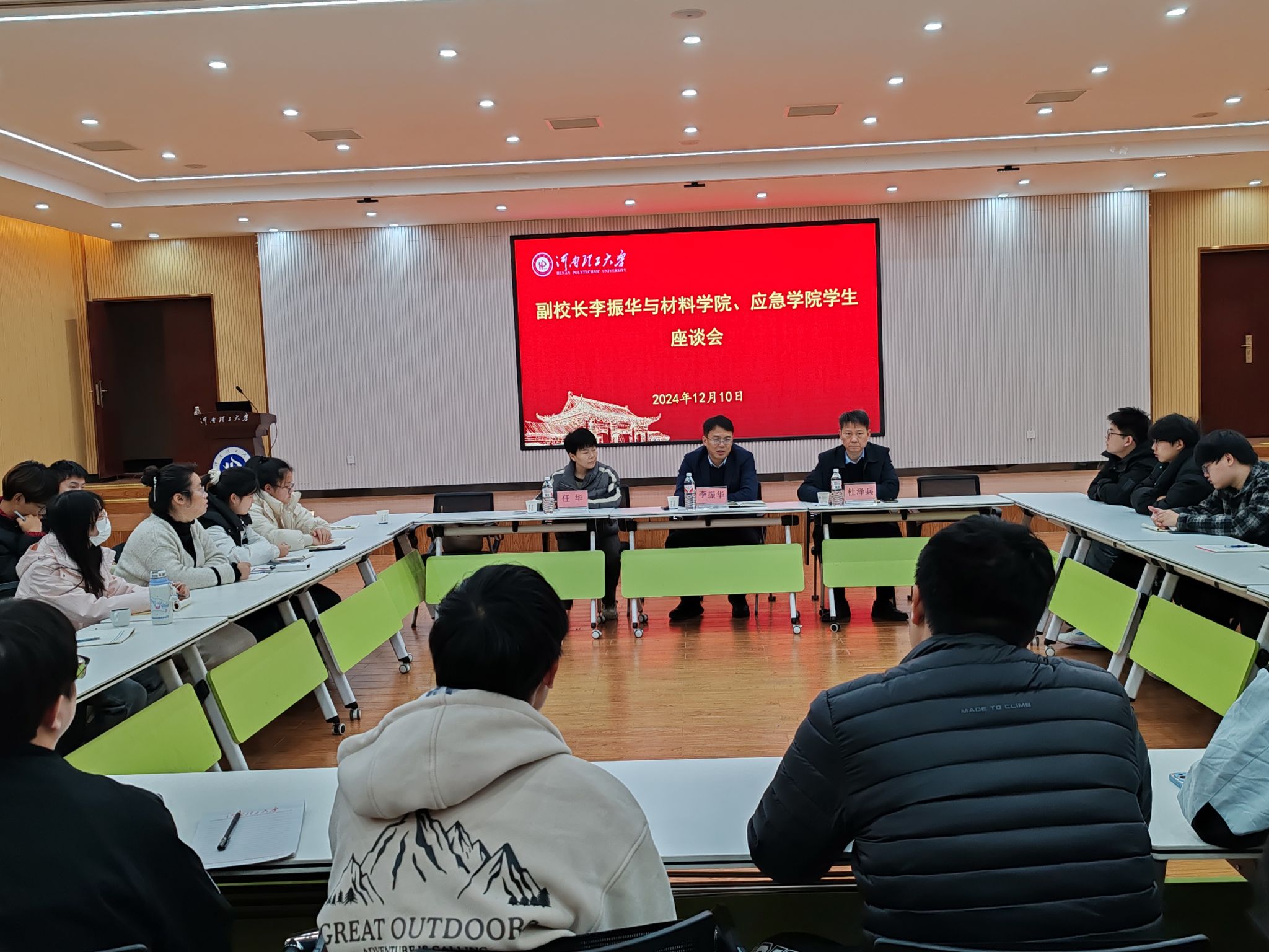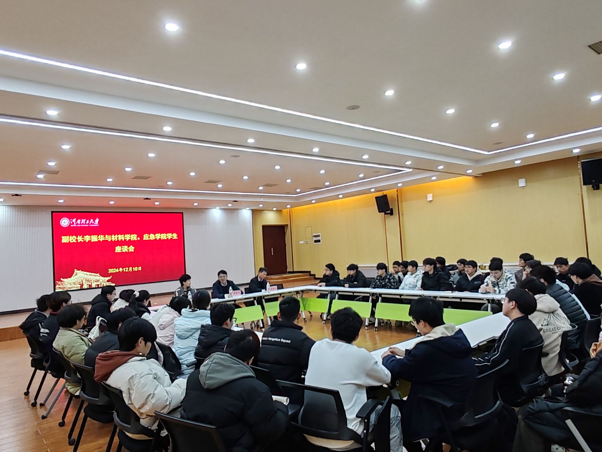 12月10日下午,室外天气寒冷,但材料学院2103多功能报告厅气氛热烈、暖意融融,副校长李振华与材料学院、应急学院的50余位学生代表在这里进行座谈交流。活动由材料学院党委书记杜泽兵主持。