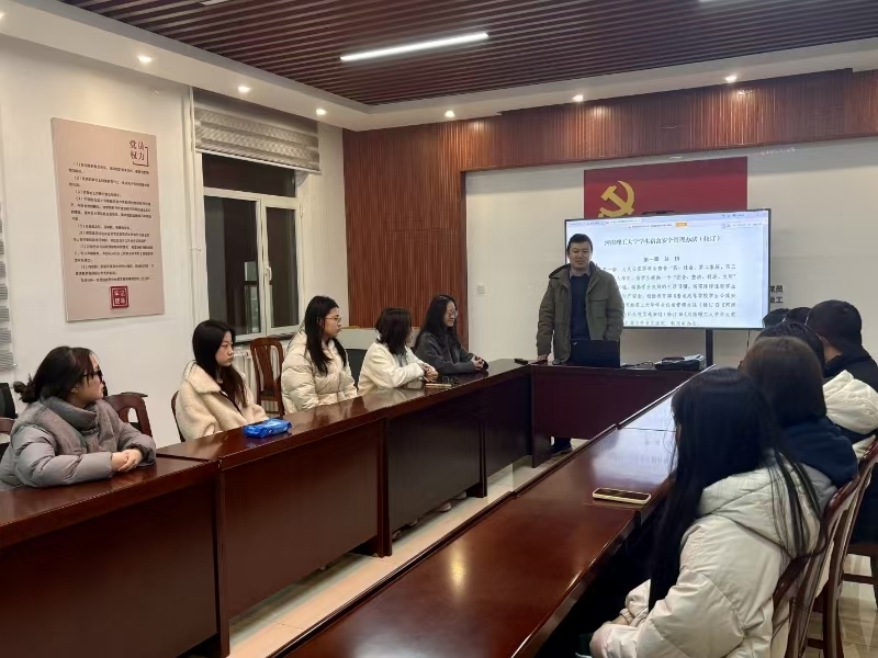 活动伊始,金欢着重讲解了学校的各项法规制度,强调了法治宣传教育的重要性,他通过讲解身边案例,深入浅出地讲解了与师生日常生活密切相关的法律法规,包括知识产权保护、网络安全、个人隐私保护等方面的知识。他告诫党员同志要带头学法、懂法、守法、用法,为维护社会稳定和谐贡献自己的力量。此外,他还就当前网络空间的一些反面案例,呼吁同学们务必要注意网络空间不是法外之地,不论是在微信朋友圈,还是其他网络虚拟社区都要遵守相关法律规定,不说过头话、不做过头事情,做文明网民,做文明大学生。