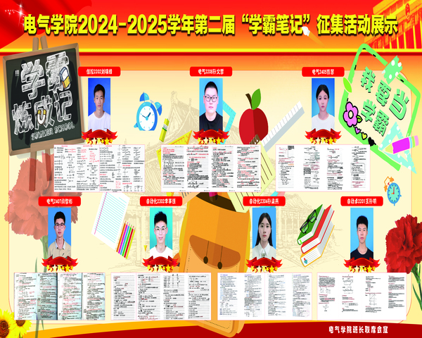 在知识的海洋中,笔记是每一位学子探索与成长的见证。优秀的学习笔记不仅能够帮助学生更好地掌握知识,提升学习效率;还能促进学生之间的学术交流和经验分享。电气学院班长联席会将继续开展优秀“学霸笔记”征集与展示,持续激励学生保持积极的学习热情,不断发掘和培养善于学习与思考的“学霸”,持续促进学院优良学风建设。