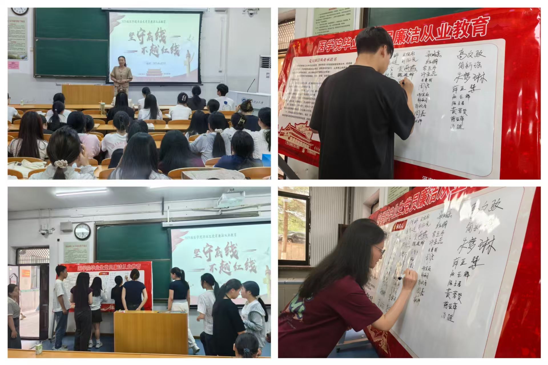 医学院党委历来重视毕业生廉洁教育,本次活动通过理论浸润、案例警示与实践承诺的闭环设计,引导青年党员将廉洁自律内化为思想自觉和行动自觉。下一步,学院将持续深化廉洁文化建设,推动廉洁教育融入人才培养全过程,为培养“医德高尚、技术精湛”的新时代医务工作者夯实根基。