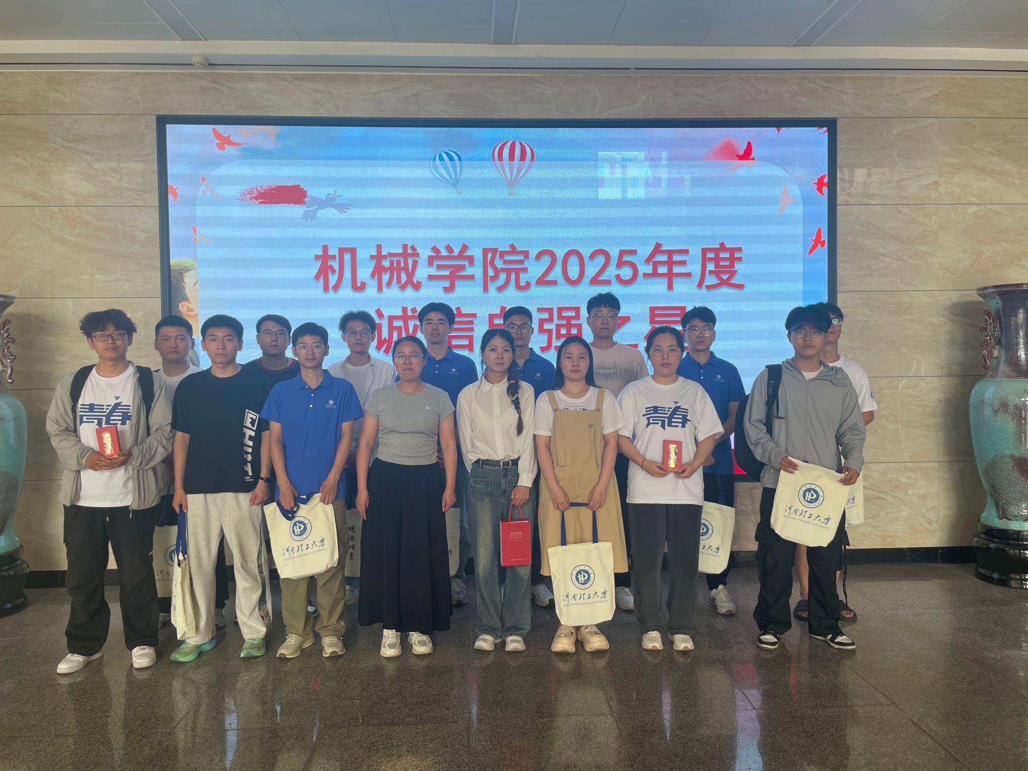 活动伊始,学院负责老师提醒贷款毕业生要珍视个人信用,并表示诚信还贷不仅是对契约精神的坚守,也是对社会信任的积极回应,更是个人诚信品质的有力彰显。她希望贷款毕业生以诚信还贷为起点,在人生道路上始终秉持契约精神,将感恩国家、学校的情感转化为积极践行社会责任的实际行动。随后,诚信还贷毕业生代表赵楠分享了自己的感悟:“国家助学贷款不仅解决了我的经济困难,更让我深刻体会到诚信做人的重要性。选择提前还贷,是我对国家和学校培养之恩的报答,也是我对诚信的一份坚守。”最后,学院负责老师为2025届诚信还贷毕业生颁发荣誉证书与奖品,并一同合影留念。