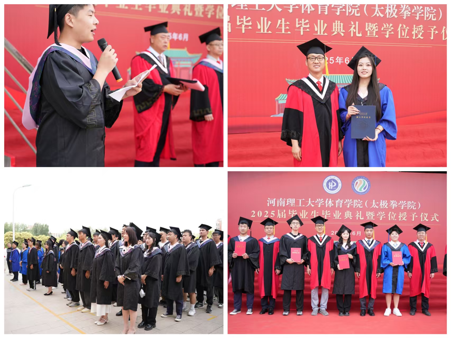 心怀热爱,奔赴山海。6月10日9:00,体育(太极拳)学院2025届毕业生毕业典礼暨学位授予仪式在实训中心西广场隆重举行。院领导班子全体成员,教师代表及2025届163名毕业生参加了典礼。仪式由学院党委副书记马志洋主持。