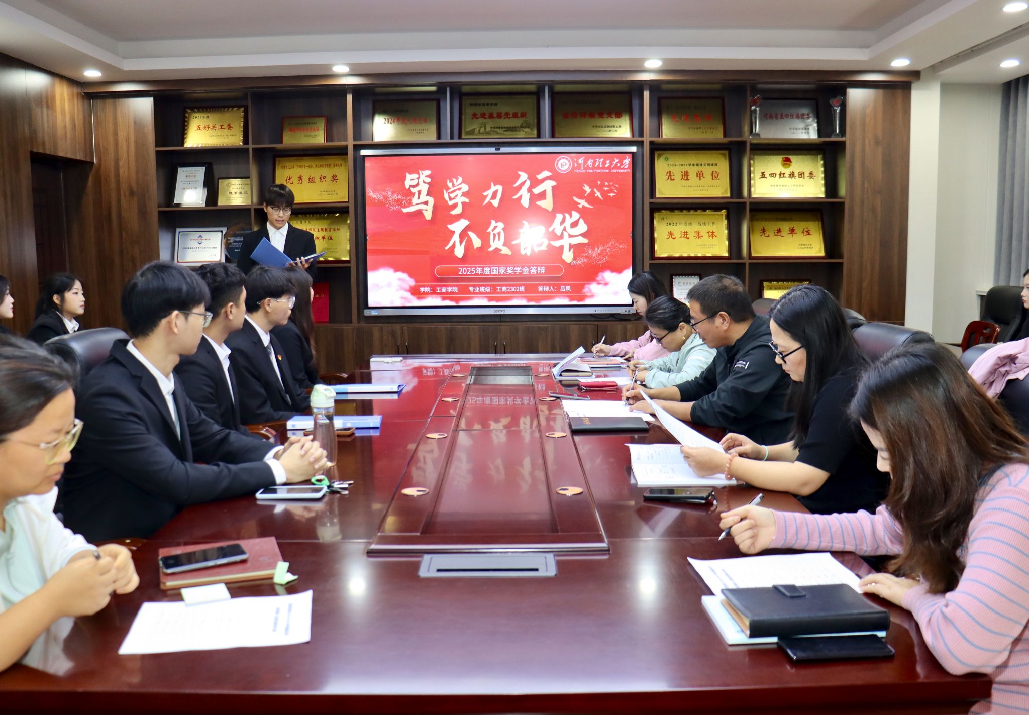本网讯(通讯员 魏晓慧 李慧娟 王鑫鑫)为切实做好2024—2025学年国家奖学金评选工作,充分发挥国家奖学金的育人树人功效和示范引领作用,遵循公平、公正、公开的原则,发挥优秀学子榜样作用,进一步推进优良学风建设,工商学院于9月22日上午在工商学院2201号会议室召开国家奖学金答辩暨评选活动。本次评选会议邀请到了工商学院党委副书记赵伟利和各年级辅导员担任评委,2023级学生刘沂佳主持。