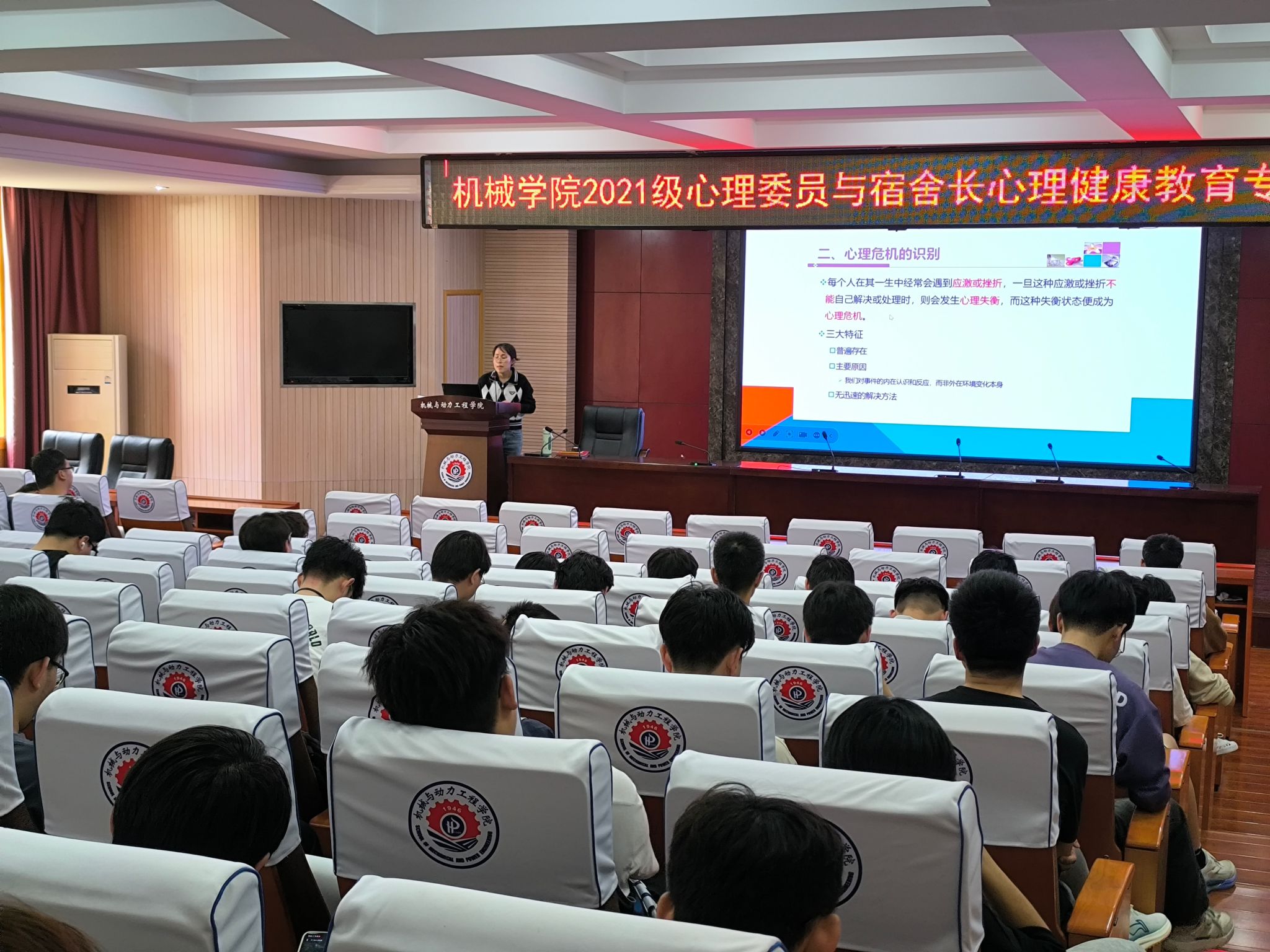为进一步提升班级心理委员和宿舍长对大学生心理危机的识别与干预能力,夯实四级学生心理危机工作网络制度,2024年4月2日、16日下午,机械学院在该院205会议室为研究生本科生共计833名心理委员和宿舍长分批开展“大学生心理危机识别与干预”心理健康专题培训。