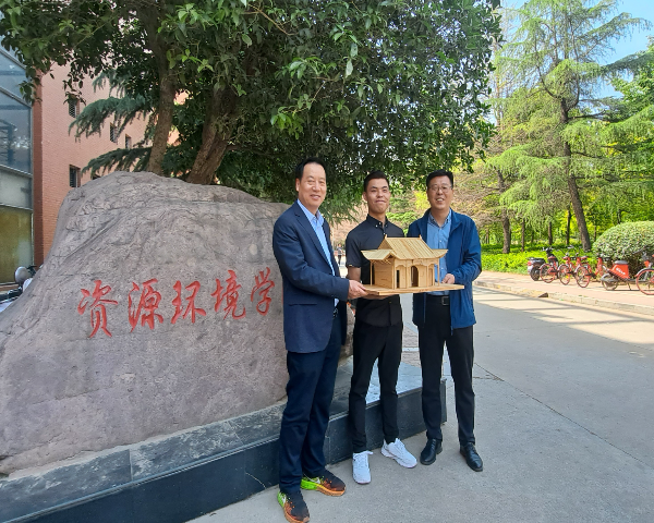 铭记师恩,感怀母校。毕业前夕,资环学院2022届毕业生代表韩磊向学院赠送了以学校西门为原型的手工艺品,学院领导罗绍河、孙付伟代表学院共同接收这份礼物。