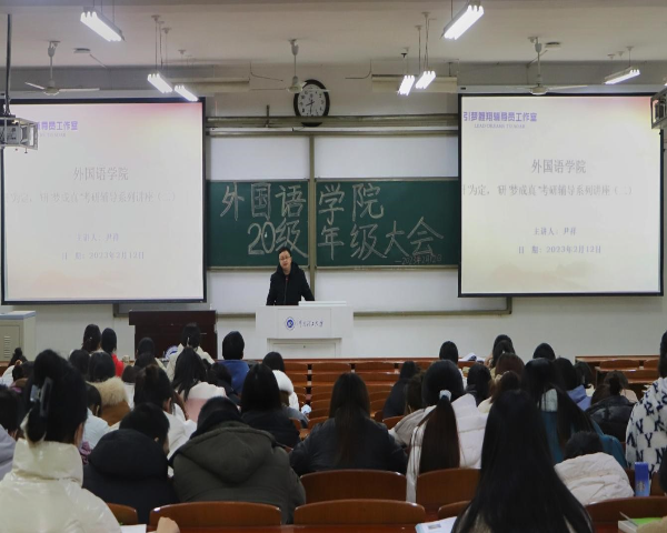2023年2月12日下午,我院于三号教学楼3101教室召开“一‘研’为定,‘研’梦成真”考研辅导讲座。讲座由院学工办主任兼专职组织员尹祥博士主讲,学院2020级全体本科生聆听了本次讲座。