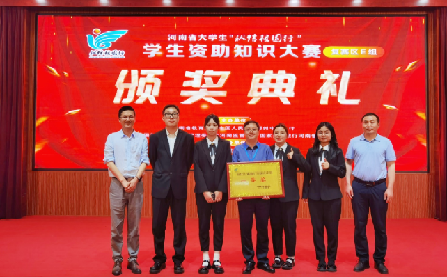 我校代表队荣获河南省“诚信校园行”学生资助知识大赛复赛区E组一等奖并成功晋级,彰显了我校学生自信自强、拼搏向上、努力奋斗的青春风貌。学校将以此为契机,继续扩大资助知识宣传力度,持续提升学生对于国家资助政策的了解程度,提高学生的诚信意识和金融风险防范意识,力争再创佳绩。(撰稿人:汤贝、亢怡心)