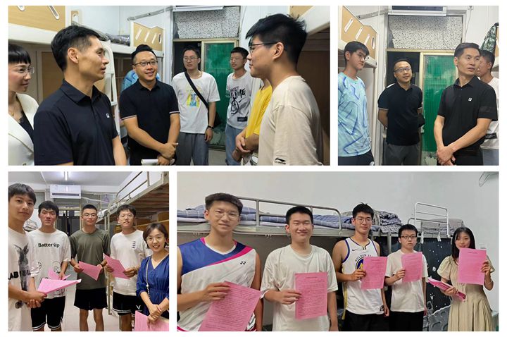 走访中,学生工作部(处)全体教职工与部分新生进行了亲切的交流互动,在解答新生入校第一天遇到各种问题的同时进行安全提醒。学生工作部(处)部长陈昊就如何成为一名优秀的大学生,度过一个安全、和谐、奋进、美好的大学时光,提出三点意见建议:一是遵守国家及学校规章制度,健康生活,合理作息,注重身心健康,尽快适应大学生活。二是要时刻将安全放在第一位,不断提升安全意识,注意防范电信网络诈骗,提高风险防范意识,确保在校期间的人身财产安全。三是珍惜美好的大学时光,扎实学好专业知识,不断提高综合素养,努力成为有理想、敢担当、能吃苦、肯奋斗的新时代堪当民族复兴重任的时代新人。新生们纷纷表示一定会严格遵守国家及学校各项规章制度,养成健康、乐观、良好的学习生活习惯,努力成为一名道德品质高尚、行为习惯良好、身心健康的优秀大学生。