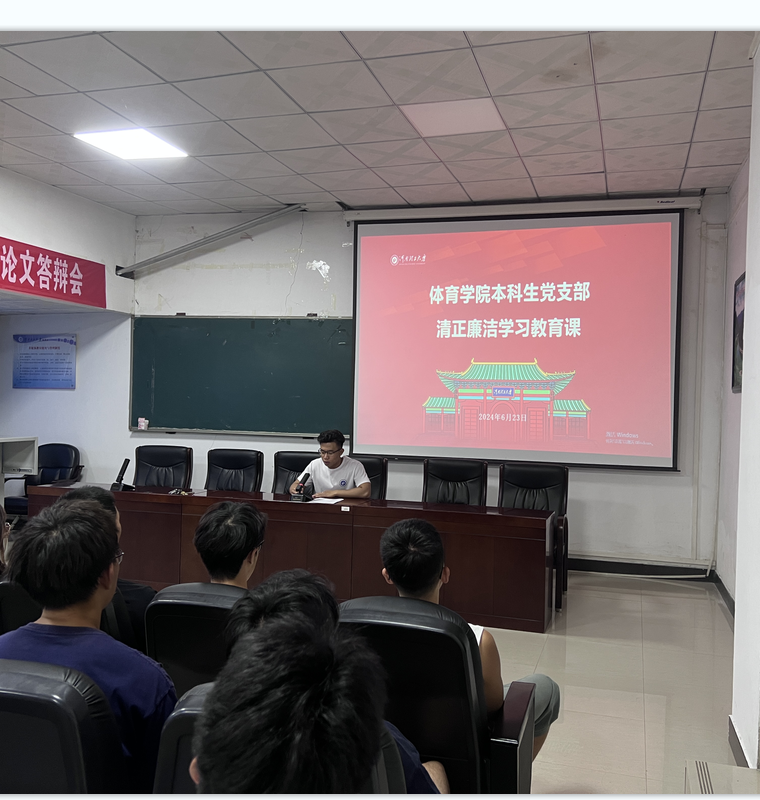 体育学院党委副书记马志洋以“加强党风廉政建设,开启新篇章”为题,面向毕业生党员讲授了廉洁教育专题党课,提出三点希望:希望同学们要不忘初心、涵养正气、勇于担当民族复兴大任;希望同学们传承理工精神,珍惜青春时光、清正廉洁走向新征程;希望同学们廉洁从业,把人生第一粒扣子扣正、扣准、扣紧、扣实,在青春的赛道上跑出当代青年最好的成绩。