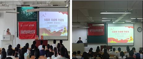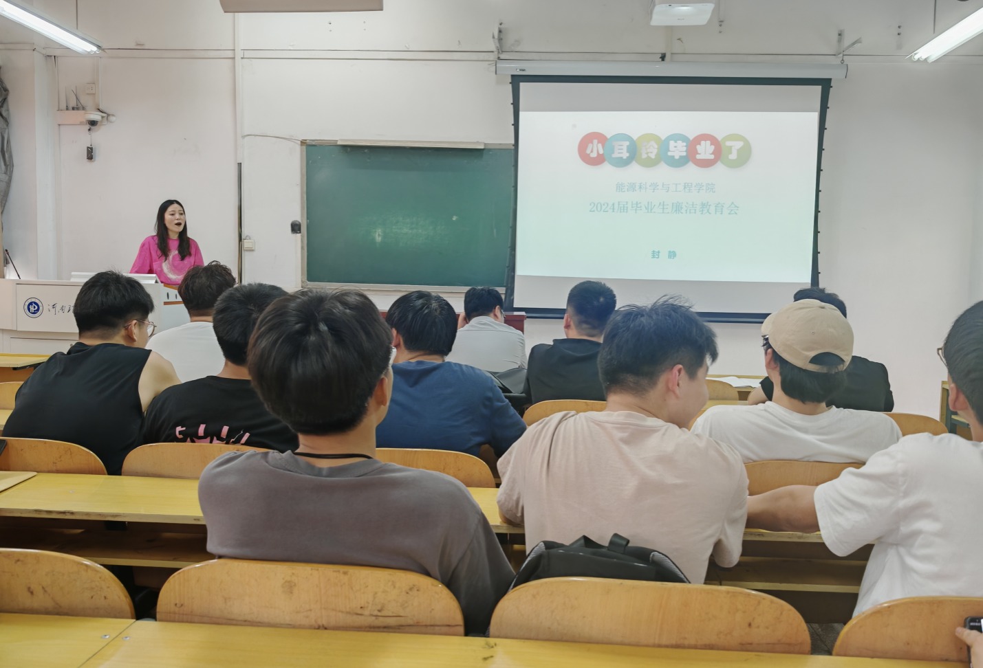 能源学院辅导员封静以“坚守从业底线,保持廉洁从业”为主题,积极开展毕业生廉洁从业教育,寄语毕业生要学会“清醒面对环境”、“正确对待权力”、“谨慎社会交往”、“诚信科学研究”、“守住人生底线”,希望毕业生始终做到心中有道德、脑海有纪律、手脚有约束、交往有准绳,时刻自重、自省、自警、自励,努力书写为中国式现代化挺膺担当的青春篇章。