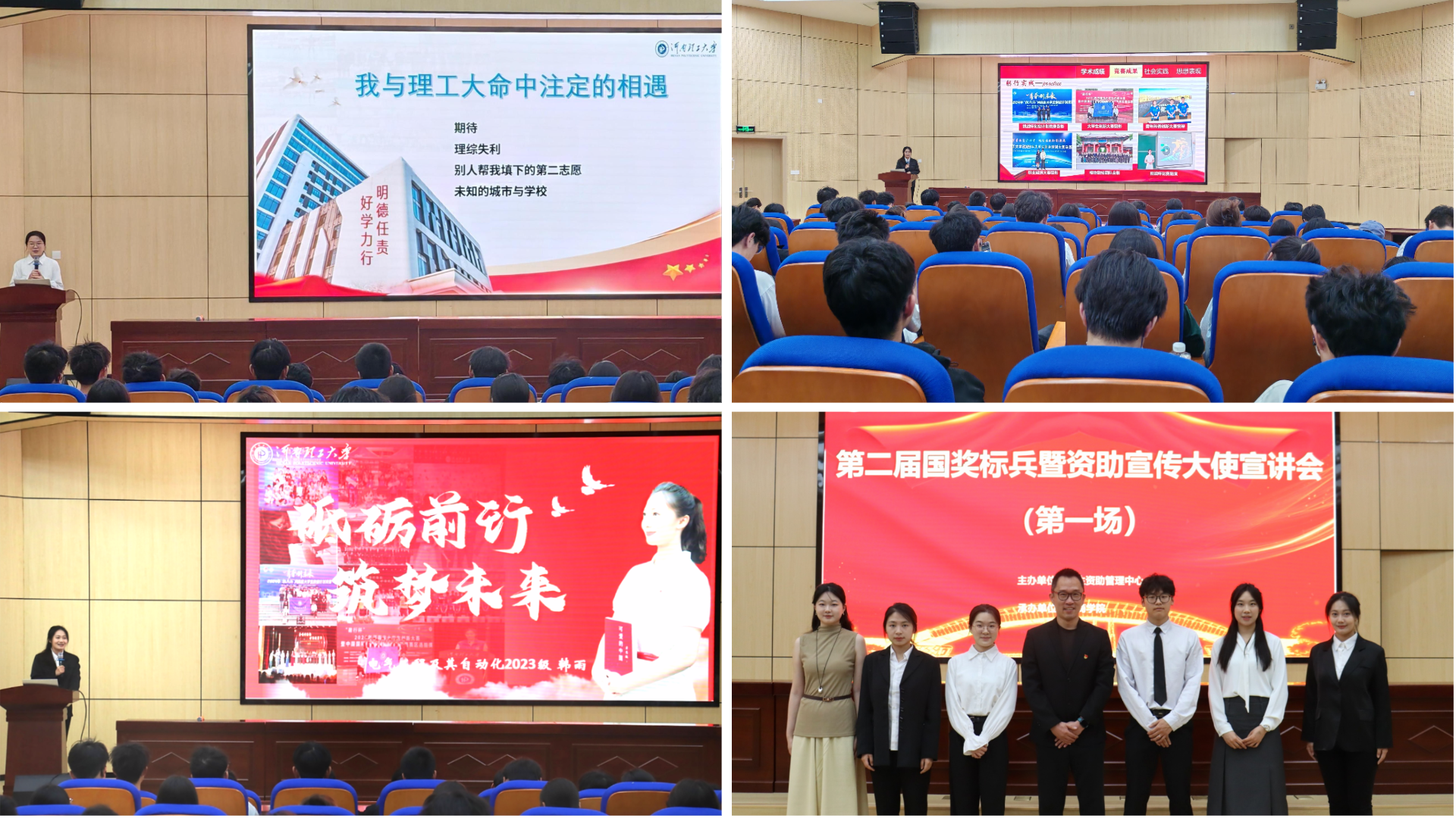 宣讲会上,我校7位国奖标兵暨学生资助宣传大使依次上台发言,他们结合自身成长历程,从学习方法创新到科研实践突破,从时间管理到未来职业规划,全方位分享个人成长奋斗故事,展现了理工学子良好的精神风貌。其中,工商管理学院张耀心以“青年无惧挑战,园中春令已至”开题,强调要从自身抓起,设立明确目标,积极进取,抓住机会走出舒适圈。外国语学院孙菡围绕“语向未来,言向世界”主题,向同学们分享“在碰撞中交融,在交融中成长”的学习方法。材料科学与工程学院王博以自身为例,告诫同学们要做好计划,专注自我,不给自己设限,成就更好的自己。活动结束后,同学们反响热烈,纷纷表示将以优秀学长学姐为榜样,珍惜学习机会,专注学业进步,在奋斗中锤炼本领,在成长中勇担使命。