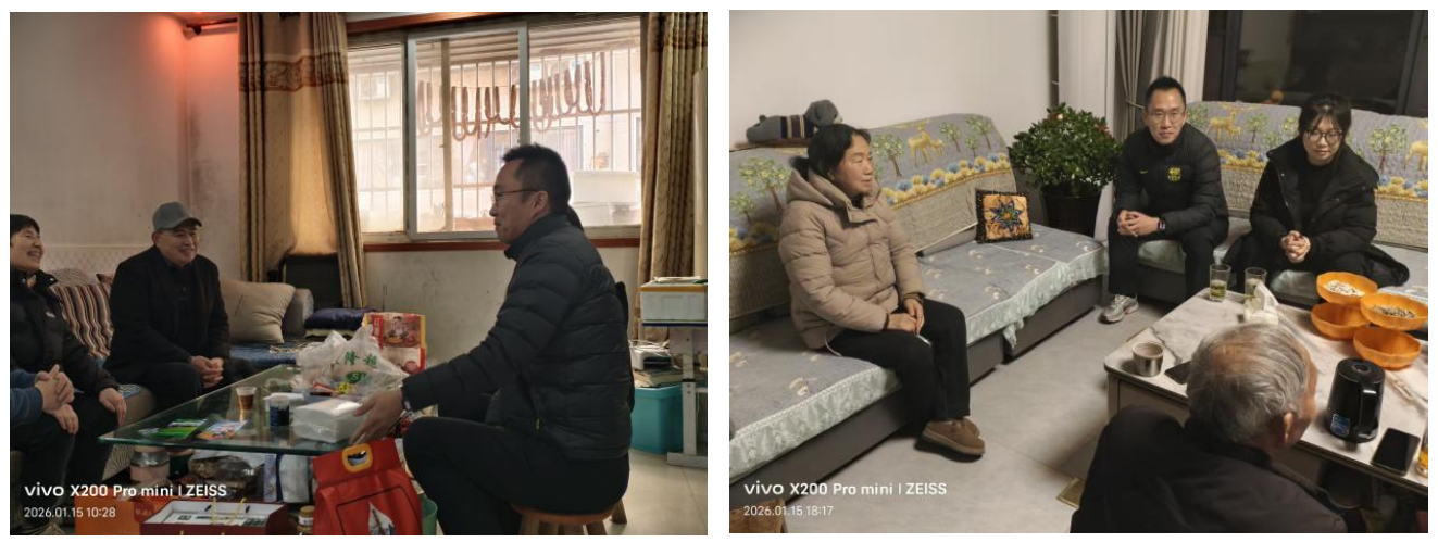 2026年寒假期间,音乐学院党委副书记王建军带领辅导员一行,赴洛阳各区县,慰问走访数户贫困学生家庭和贷款逾期毕业生家庭,送去了学院的关怀与新春的祝福。