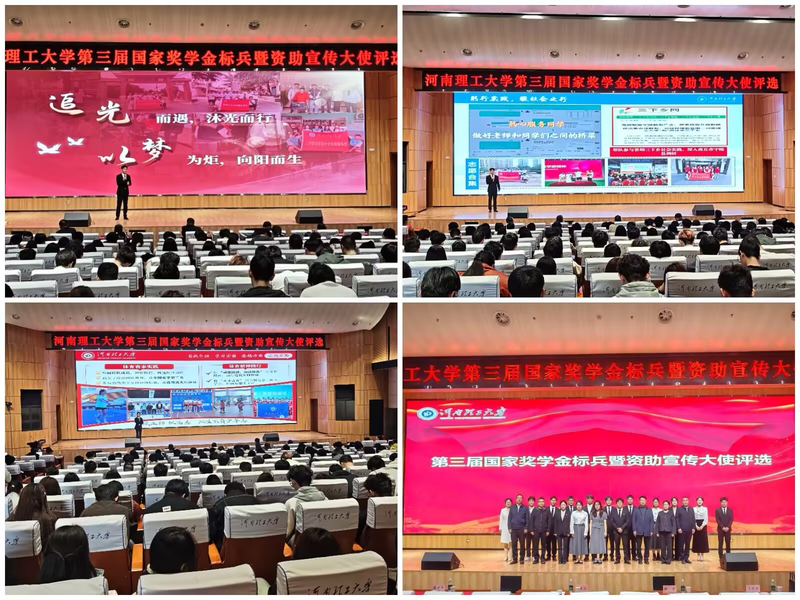 经过学院初选和学校复审,共有15名国家奖学金获得者进入终选环节。评选现场,候选人以亲身经历为引,畅谈学习心得、科研突破、志愿实践与人生规划,展现理工学子的青春风采。经现场评委综合评审,11位同学获评第三届“国家奖学金标兵”暨资助宣传大使称号。
