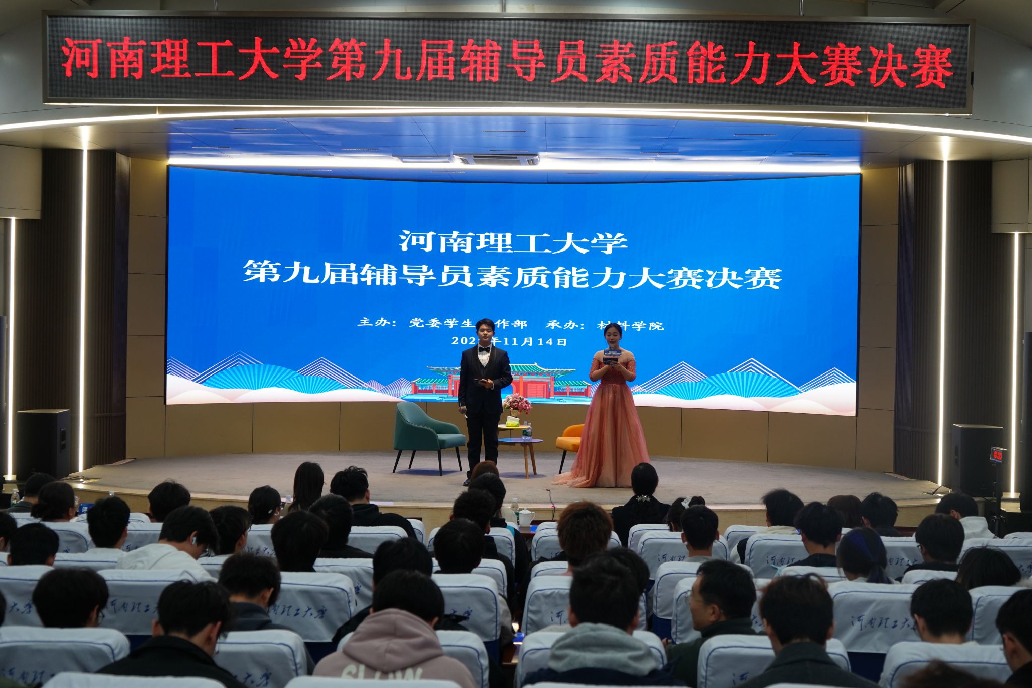 本网讯(通讯员 赵琨 张时磊)11月15日下午,河南理工大学第九届辅导员素质能力大赛决赛在学校南校区力行楼学术报告厅落幕。副校长边亚东到现场观赛指导;各学院党委副书记、全体辅导员及学生代表观摩决赛,共同见证这场辅导员队伍的“专业大比武”。