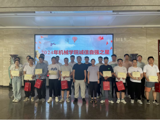 为推动2024届毕业生贷款还款工作顺利开展,树立诚信还贷典范,引导更多学生树立正确的价值观和人生观,6月13日,机械学院在学院109组织开展2024届“诚信自强之星”表彰会,出席此次会议的有该院党委副书记王帅,学工办主任王瑞瑞、资助专员苏肖肖及提前还款的优秀学生代表。