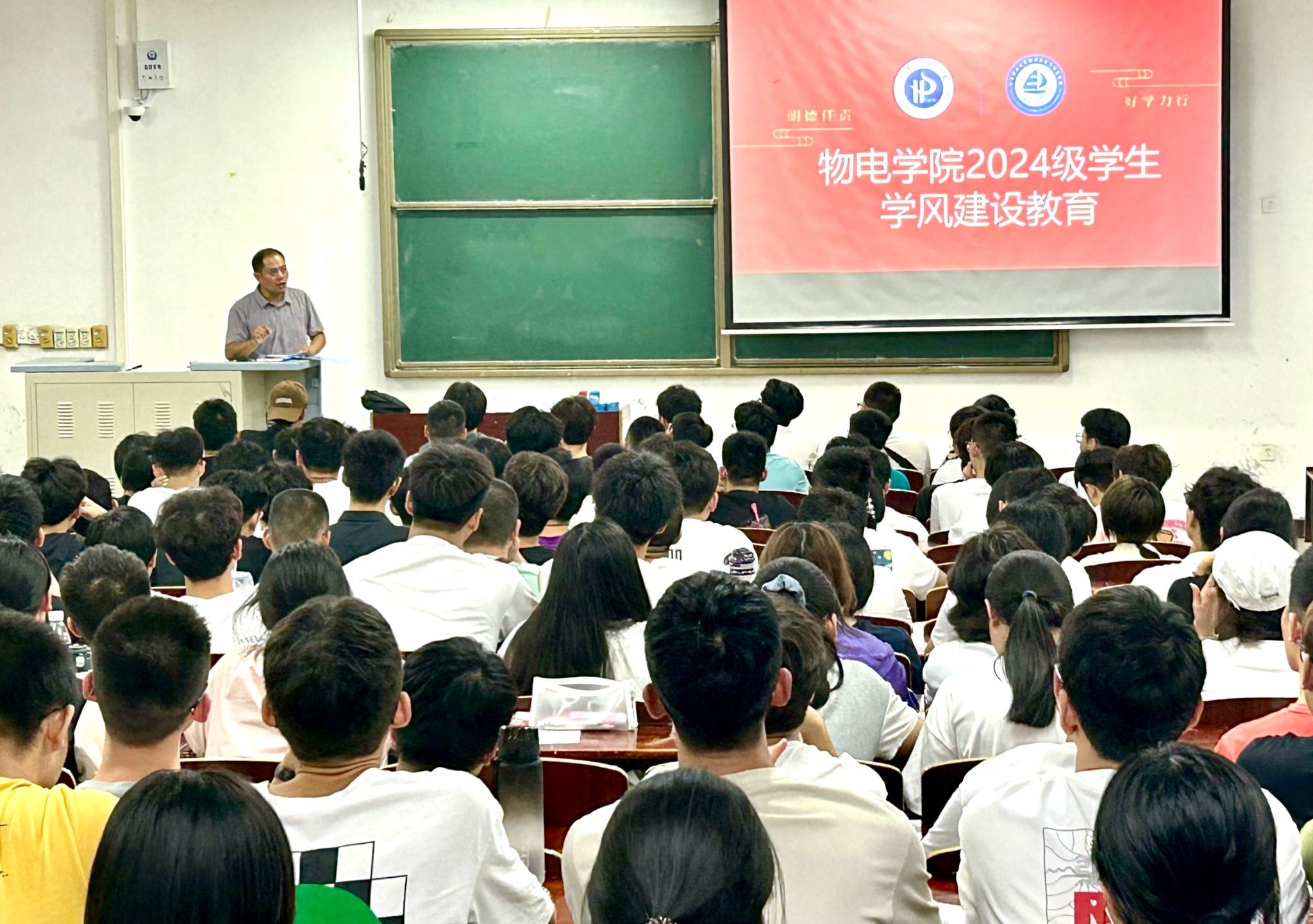 秋风拂,新篇启。为使24级新生对大学生活有更加深入的了解,9月7日晚,物电学院于计算机楼101室组织开展了“开学第一课”入学教育,2024级全体新生齐聚一堂,共同翻开新学期的新篇章。本次会议由新生辅导员程谦和尚如静主持。