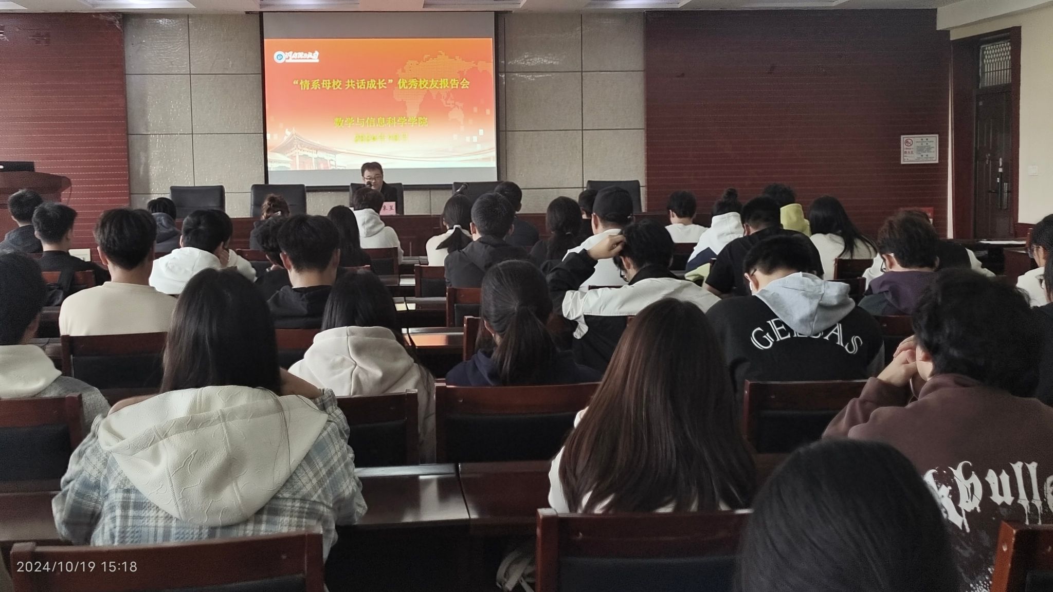 为充分发挥校友育人作用,10月19日,数信学院在该院3401会议室举行“情系母校 共话成长”优秀校友报告会。本次报告会邀请该院2003级数学与应用数学专业校友郭象昱作为主讲嘉宾,报告会由该院党委副书记王明中主持。
