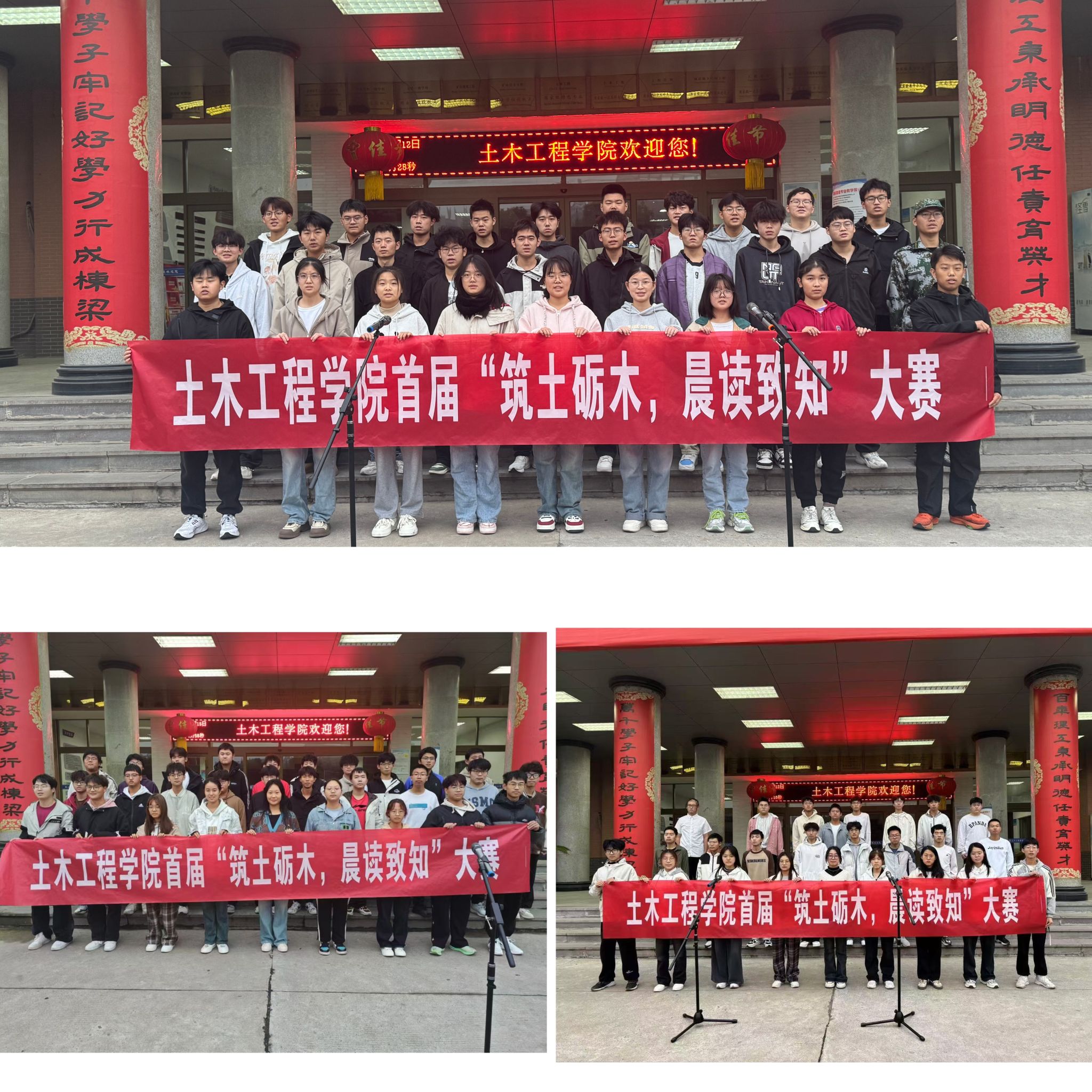 为进一步引导同学们养成良好的阅读习惯,提升语言表达能力和文学素养,营造浓厚的校园文化氛围。土木学院于11月12日——15日早晨,在学院楼前广场举行首届 “筑土砺木 晨读致知”大赛。比赛评委由该院党委副书记杨波、学工办和教科办负责人担任,该院2024级全体学生参加了比赛。