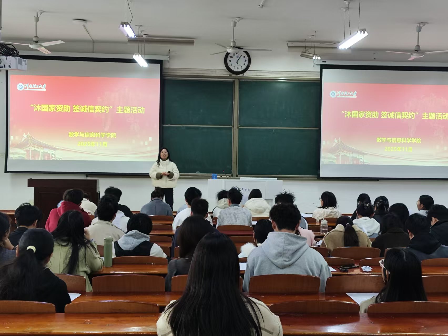 本网讯(通讯员 王艳 王孝华)为使受助学生深悟国家资助政策要义,筑牢诚信履约思想根基,涵养感恩奉献品格,11月5日,数信学院组织开展“沐国家资助,签诚信契约”主题教育活动。该活动由王孝华老师主持,全体2025年度贷款学生参加。