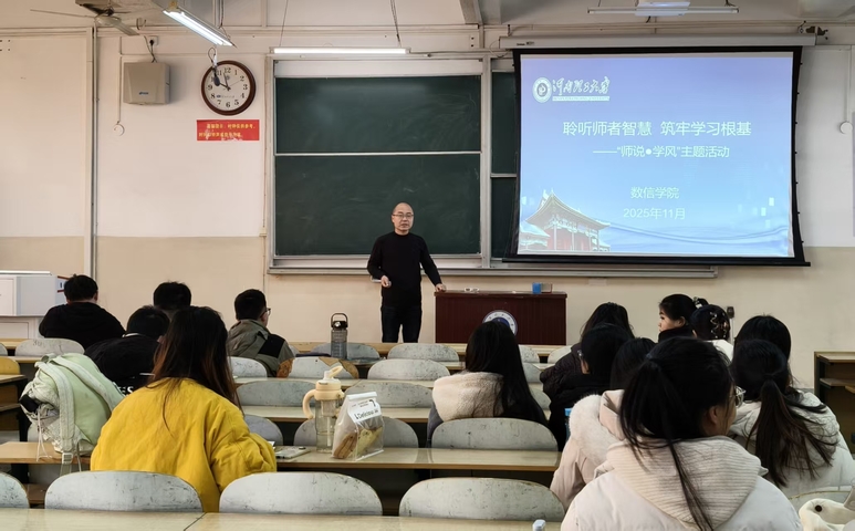 为强化学风建设,引导学生树立正确的学习观,11月28日,数信学院在2306举办“聆听师者智慧,筑牢学习根基”——“师说·学风”主题活动。该院院长毋海根担任主讲,为在场学子带来一场富有深度与启发的专题讲座。