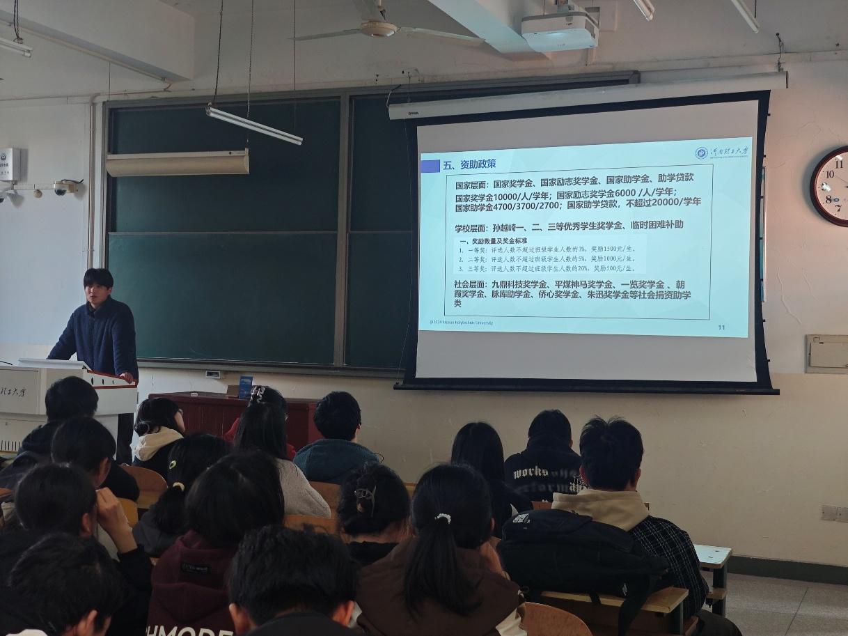宣讲会上,赵春强老师围绕国家及学校现行资助体系展开详细解读,重点介绍了奖助学金、助学贷款、勤工助学、临时困难补助等多项资助政策的具体内容、申请条件及流程。他结合测绘学院实际,通过案例分析,帮助学生清晰理解政策覆盖范围与实施细节,确保家庭经济困难学生能够精准获得帮扶。赵老师强调,资助工作不仅是物质支持,更是精神激励,学院始终将“扶困”与“扶智”“扶志”相结合,致力于构建全方位、多层次的发展型资助体系,助力学生成长成才。